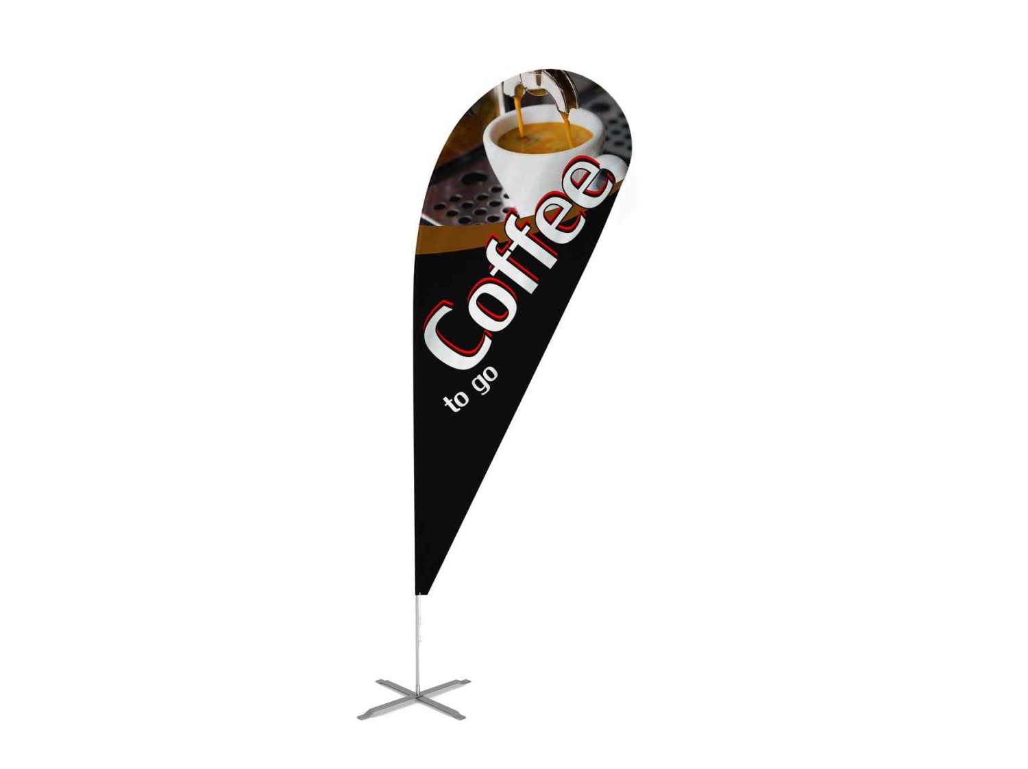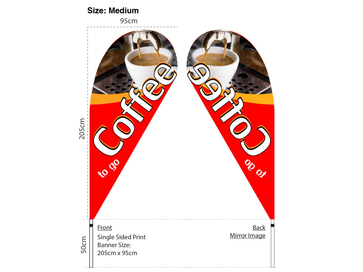 Introducing our contemporary "Coffee to Go" teardrop flag with an eye-catching design. Perfect for coffee shops and cafes, this flag adds a touch of contemporary style to any setting. Let the world know you're ready to serve up delicious coffee on the go w