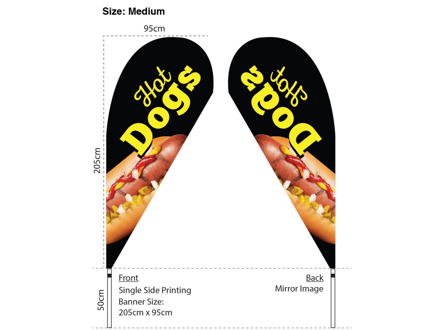 Ignite a hungry appetite in your customers with our Hot Dog flag, showcasing a mouthwatering picture of a yummy hot dog that will leave them craving for more.