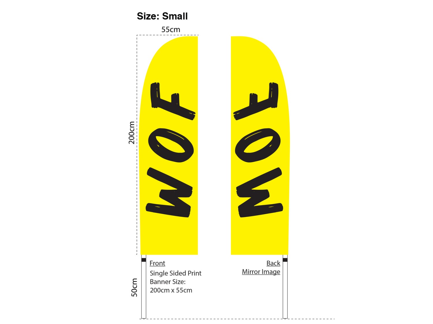Increase customer flow to your auto-mechanic business with our high-visibility WOF flag, designed to draw attention and serve as a prominent sign. This flag is sure to capture the eye of passersby, driving more customers to your establishment.