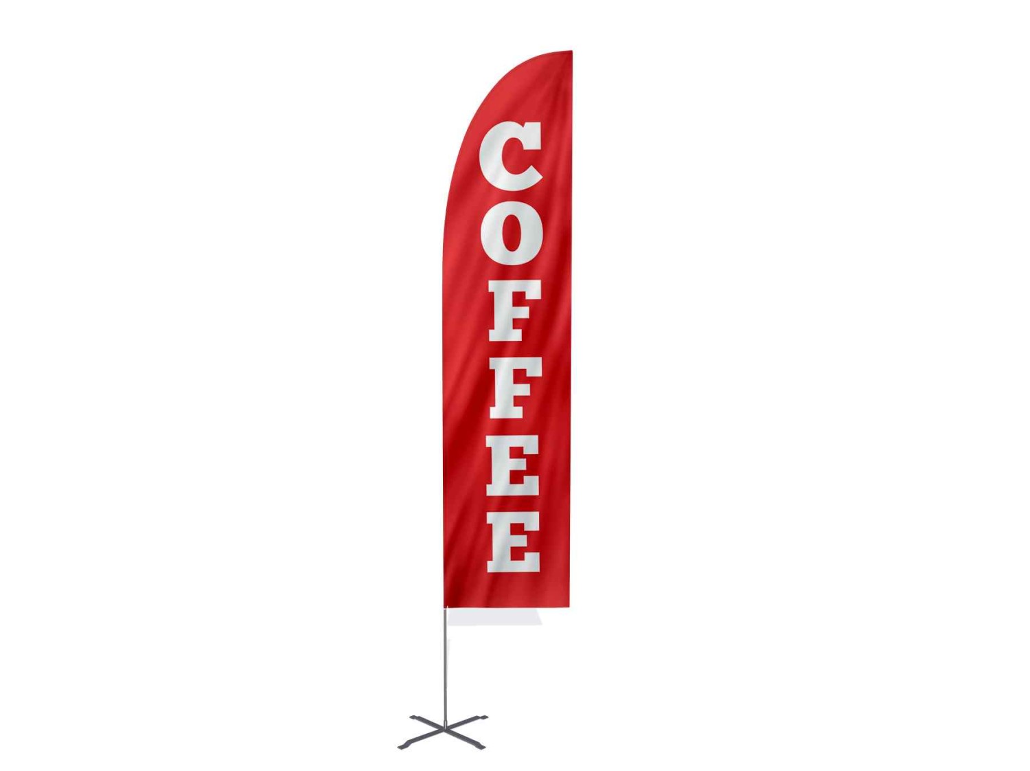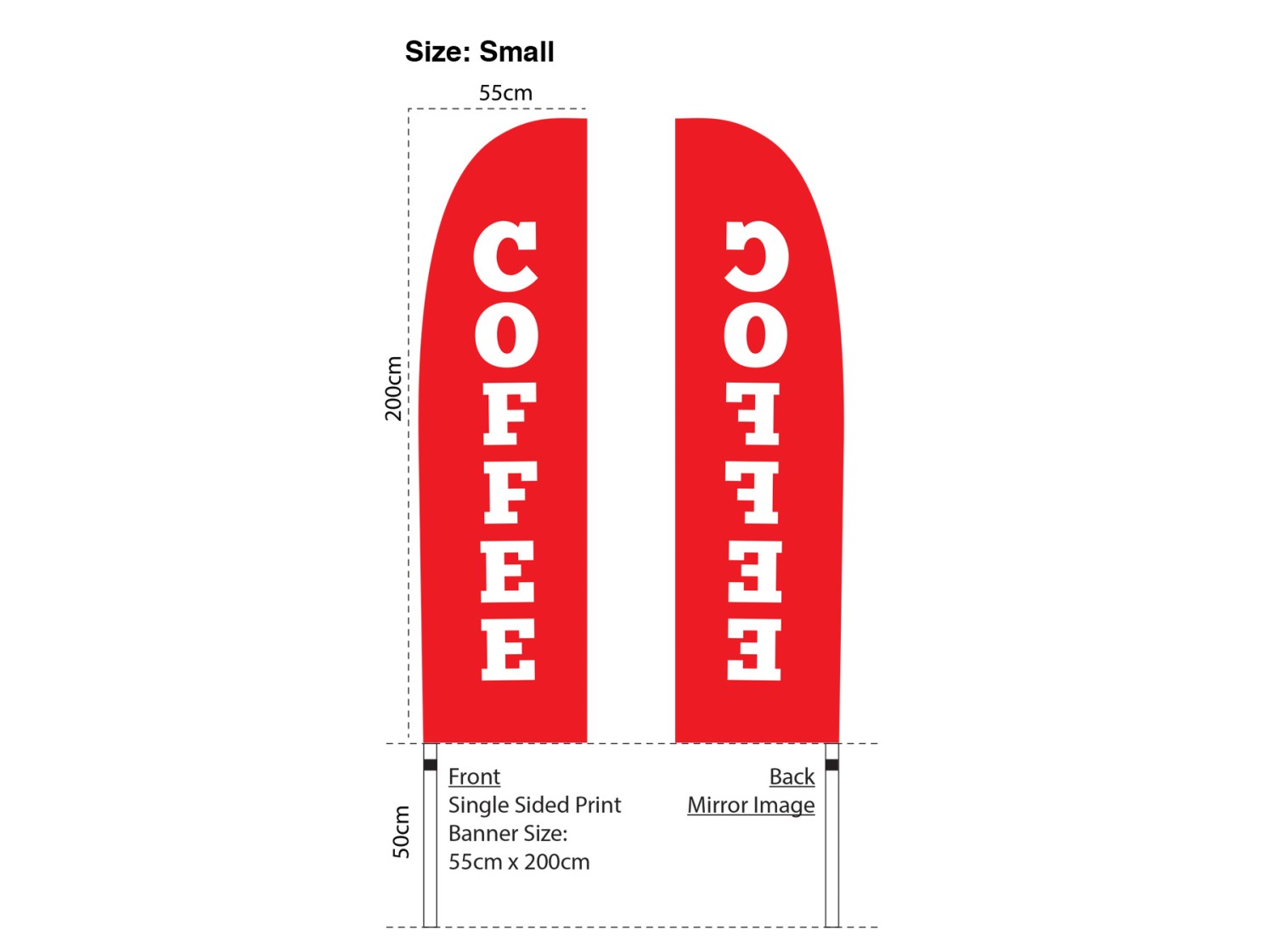 Our coffee flag features an easy-to-read font style with a contrasting effect, ensuring clear visibility even from a considerable distance.