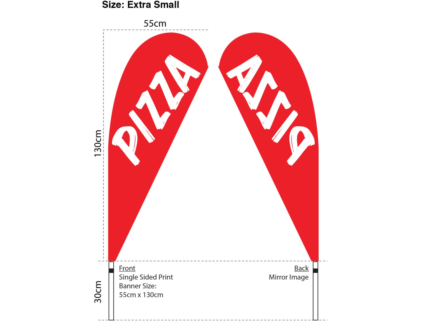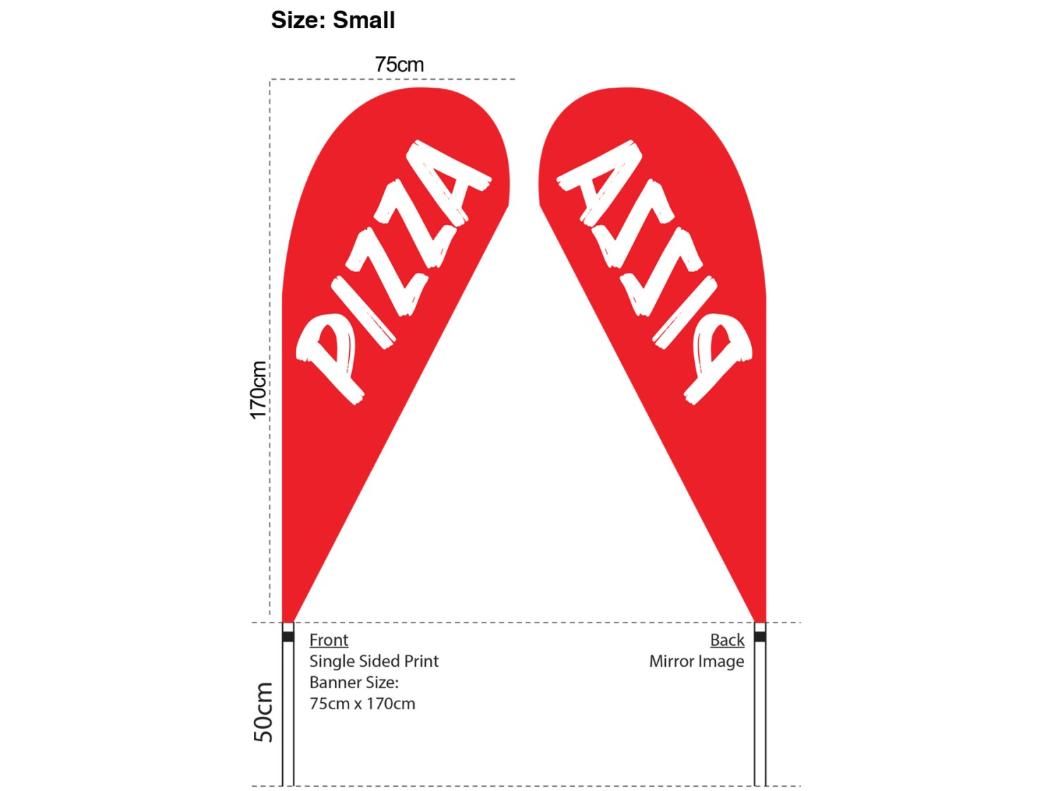 Whether you're a fast food chain or a restaurant, our Pizza flag is the ideal way to promote your delicious pizzas. With its eye-catching contrasting colors, this flag is designed to attract attention.