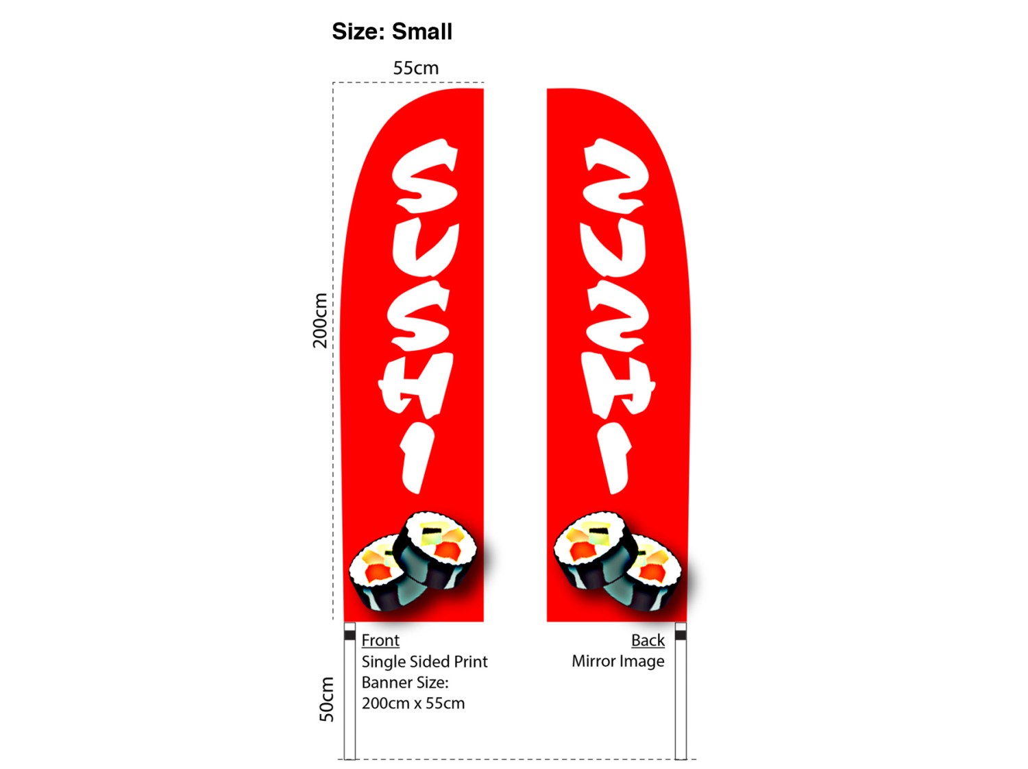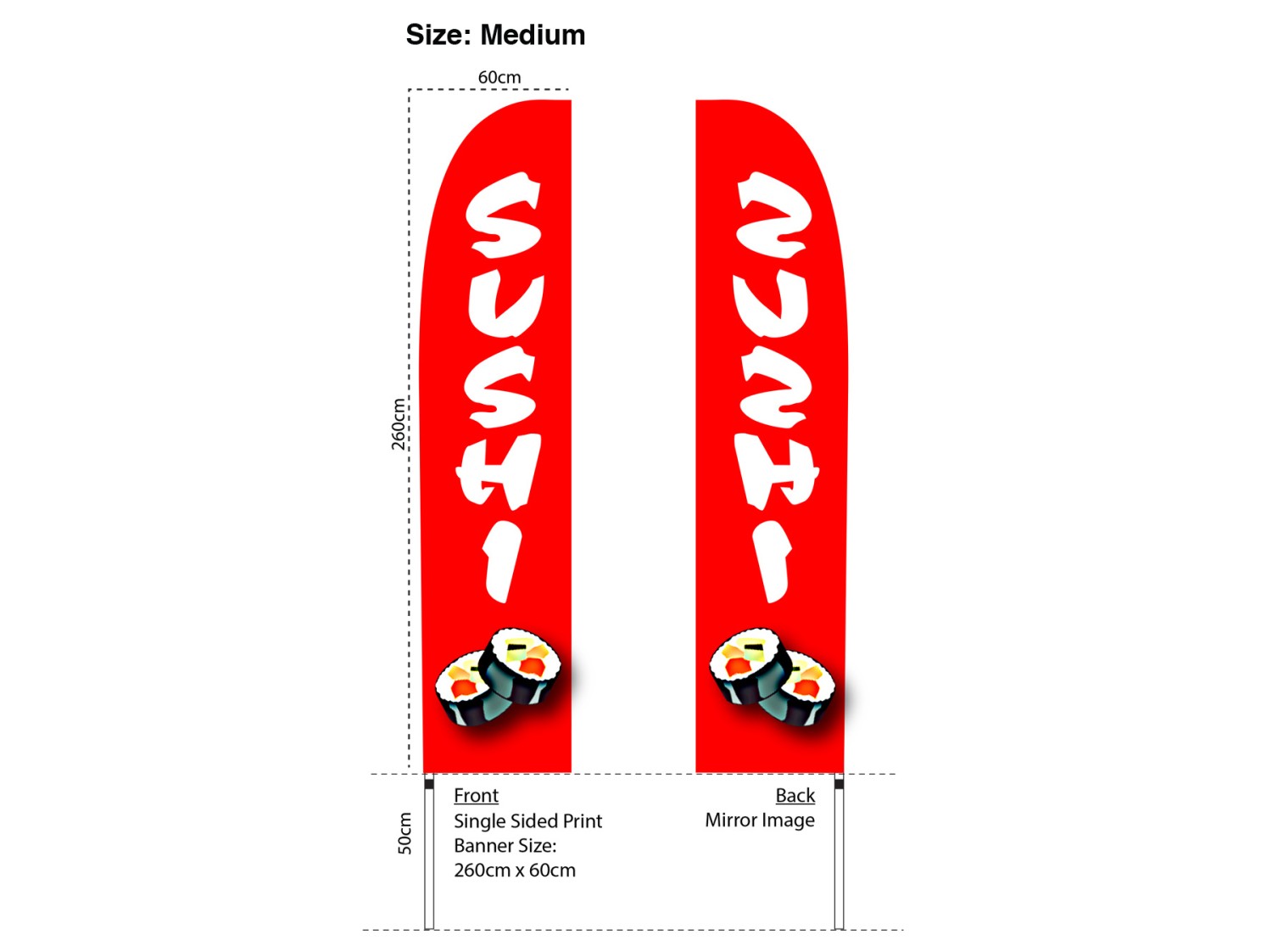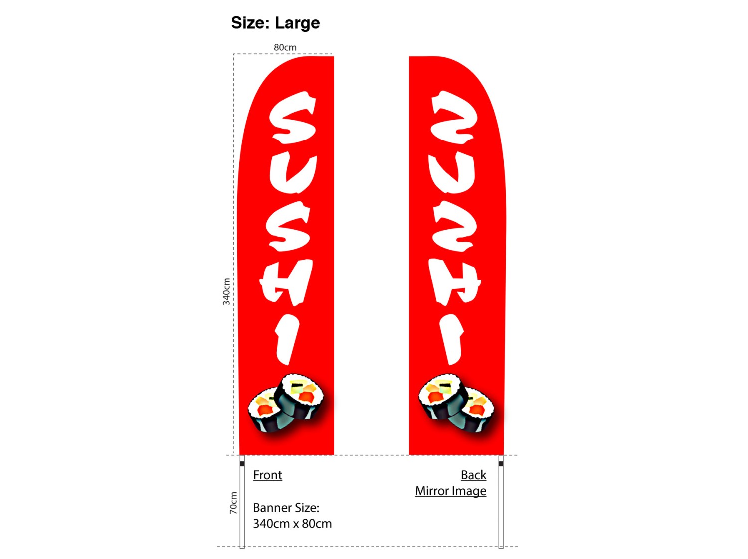 Transport your customers to Japan with our Sushi flag, capturing the essence of Japanese cuisine and creating an authentic experience that will delight their taste buds.