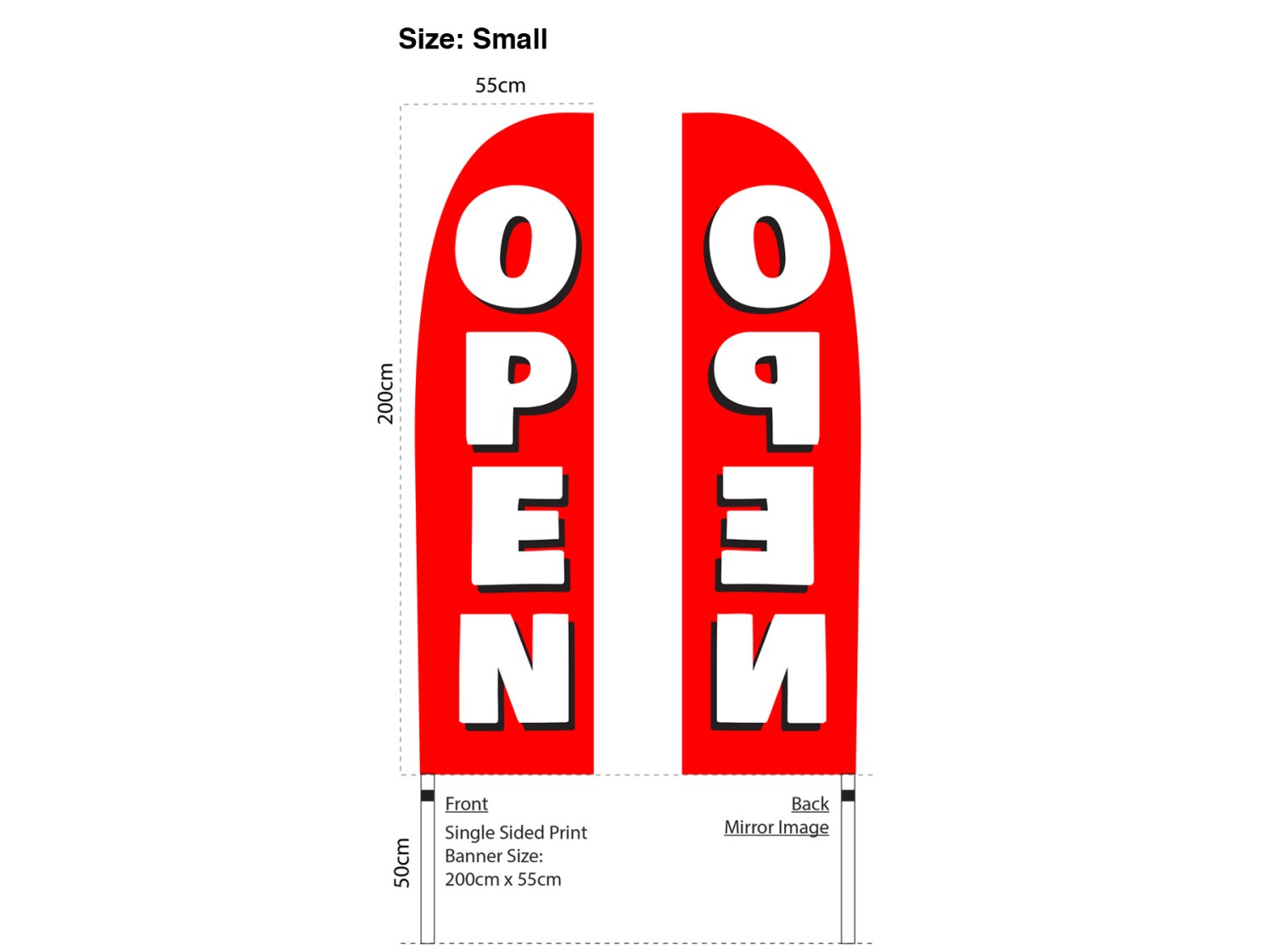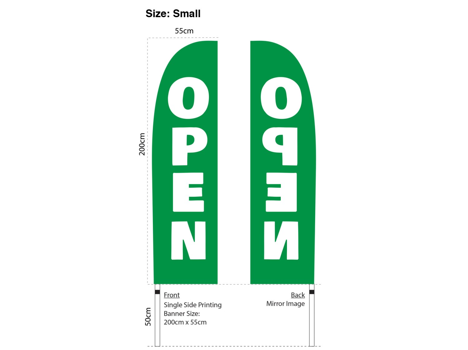 Make a bold statement with our Open flag, featuring vibrant color contrast and bold lettering that is sure to catch attention. With this flag proudly displayed, your customers will immediately know that your business is open and ready to serve them.