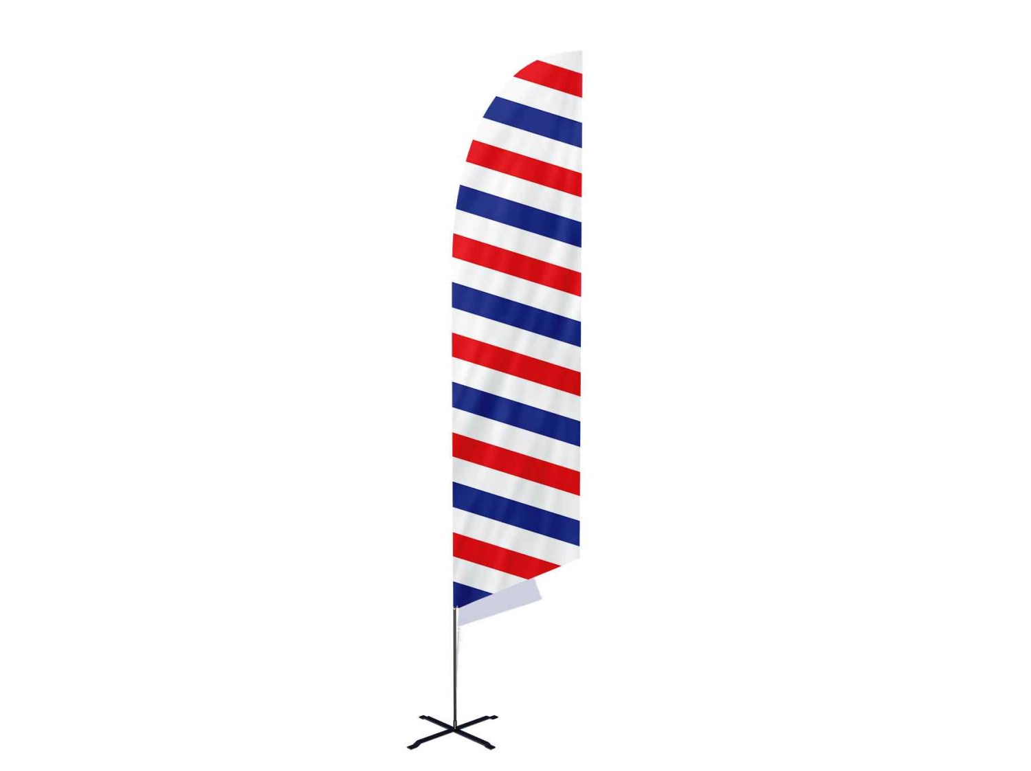 Elevate your barber shop's advertising with our Barber Stripes flag, showcasing stylish illustrations through abstract stripes. This unique and visually captivating design is guaranteed to catch attention, making it an effective sales booster.
